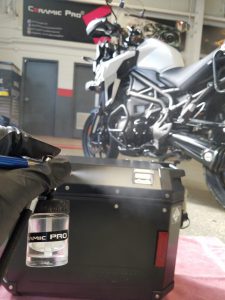 Keeping a motorcycle clean can be difficult, and doing the actual cleaning is even harder to do. I you would like to keep your motorcycle looking great for years and make it easy to clean, then consider Ceramic Pro on your bike. Using an airbrush approach, the coating is applied to the various surfaces of a motorcycle which give it the following benefits: