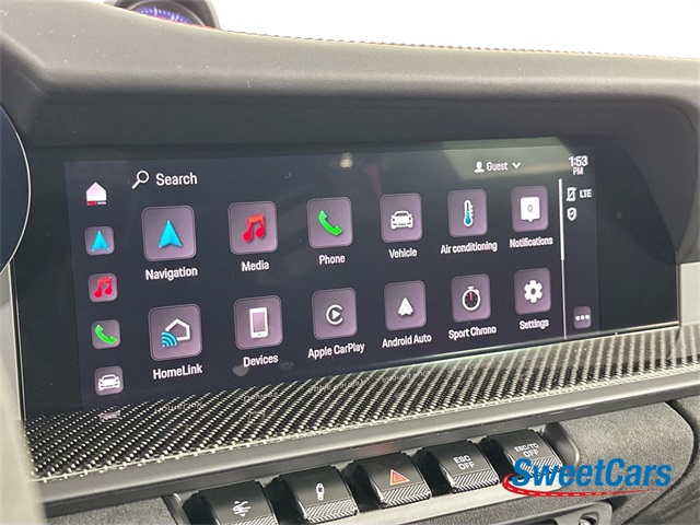 Full bucket seats, front axle lift system, 23.7 gallon fuel tank, satin black wheels with red lip, carbon fiber upper mirror trim, carbon fiber roof, black LED headlights, Exclusive Design fuel cap, Exclusive Design taillights, Bose Surround Sound System, trim inlays in carbon fiber, aluminum footrest cover and pedal covers, rear park assist and more!
