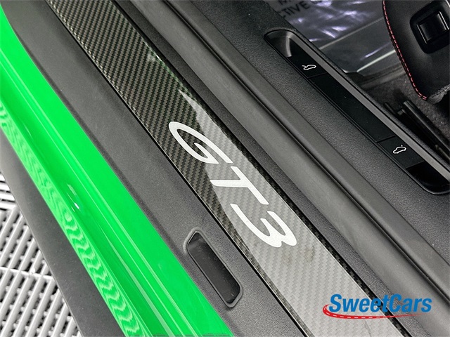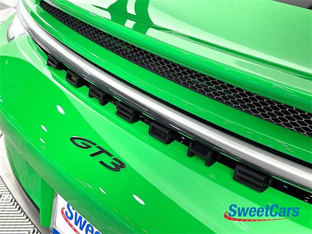 This GT3 is finished in Python Green over a Black interior with Guards Red stitching and factory options include:
