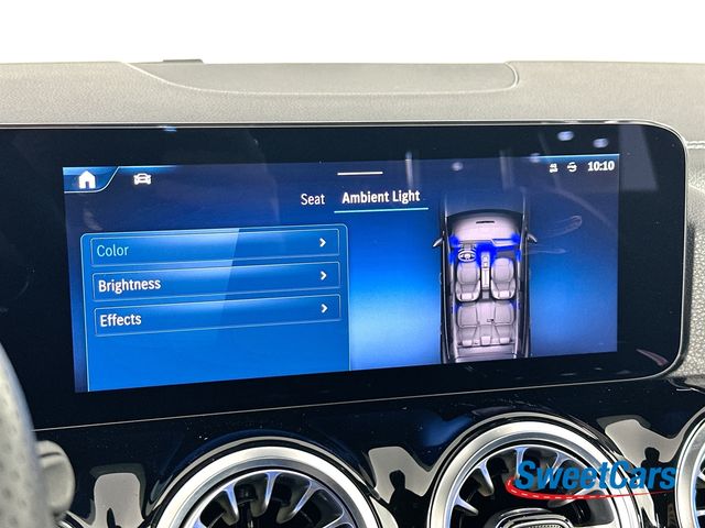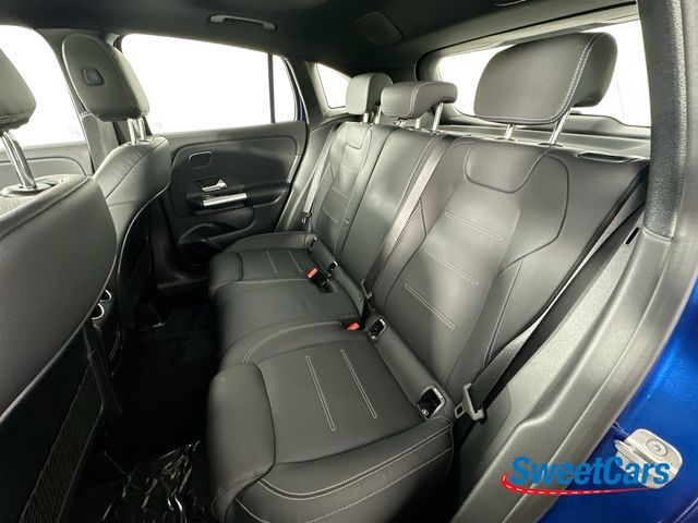 This GLA35 is finished in Starling Blue Metallic over a Black interior and factory options include: