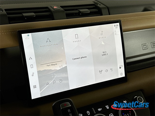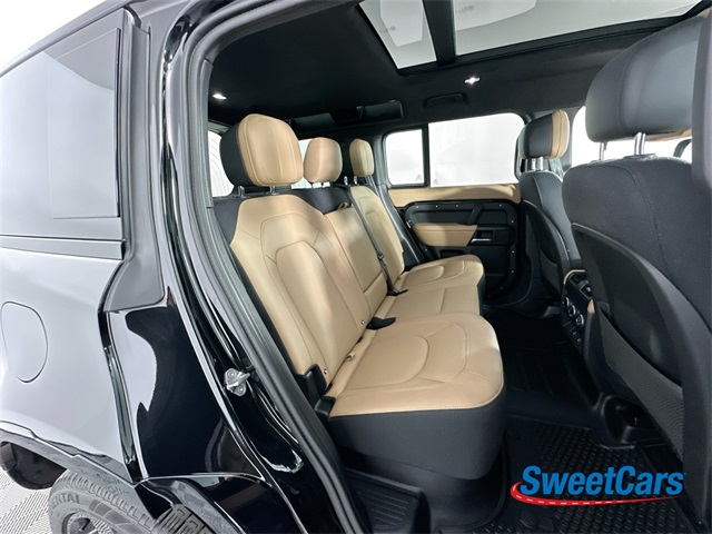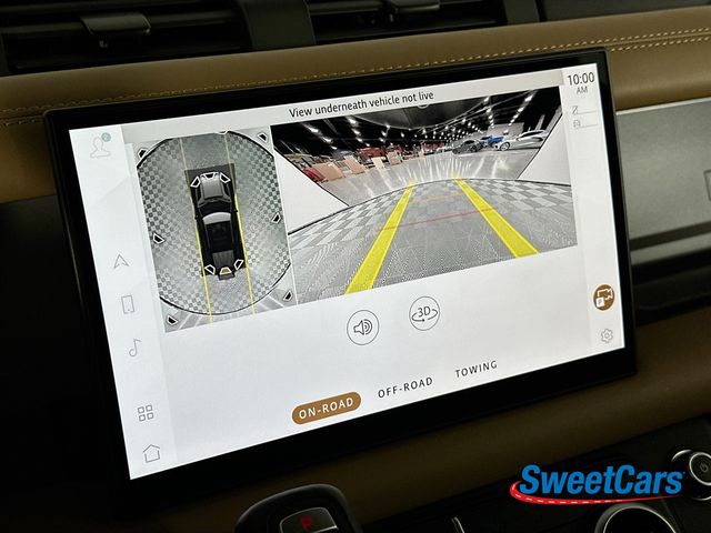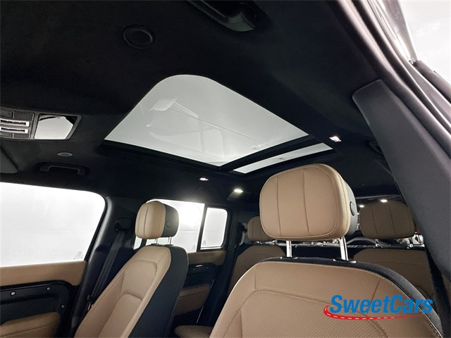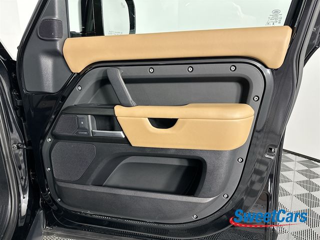 This Defender is finished in Santorini Black Metallic over an Ebony and Windsor leather interior and features include heated steering wheel, adaptive cruise control, SIRIUS XM radio, navigation, 360 degree parking cameras, heated and ventilated front seats, heated rear seats, center console refrigerator, glass sunroof, 4-zone climate control, Meridian Surround Sound, air suspension, running board steps and more!